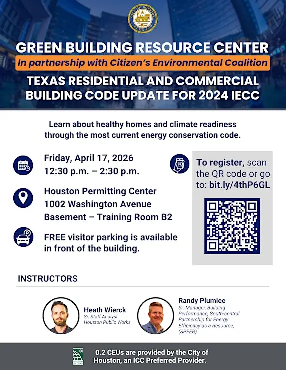 FREE Lunch & Learn with Randy Plumlee, SPEER and Heath Wierck, Houston Code Development, to present 2024 IECC
