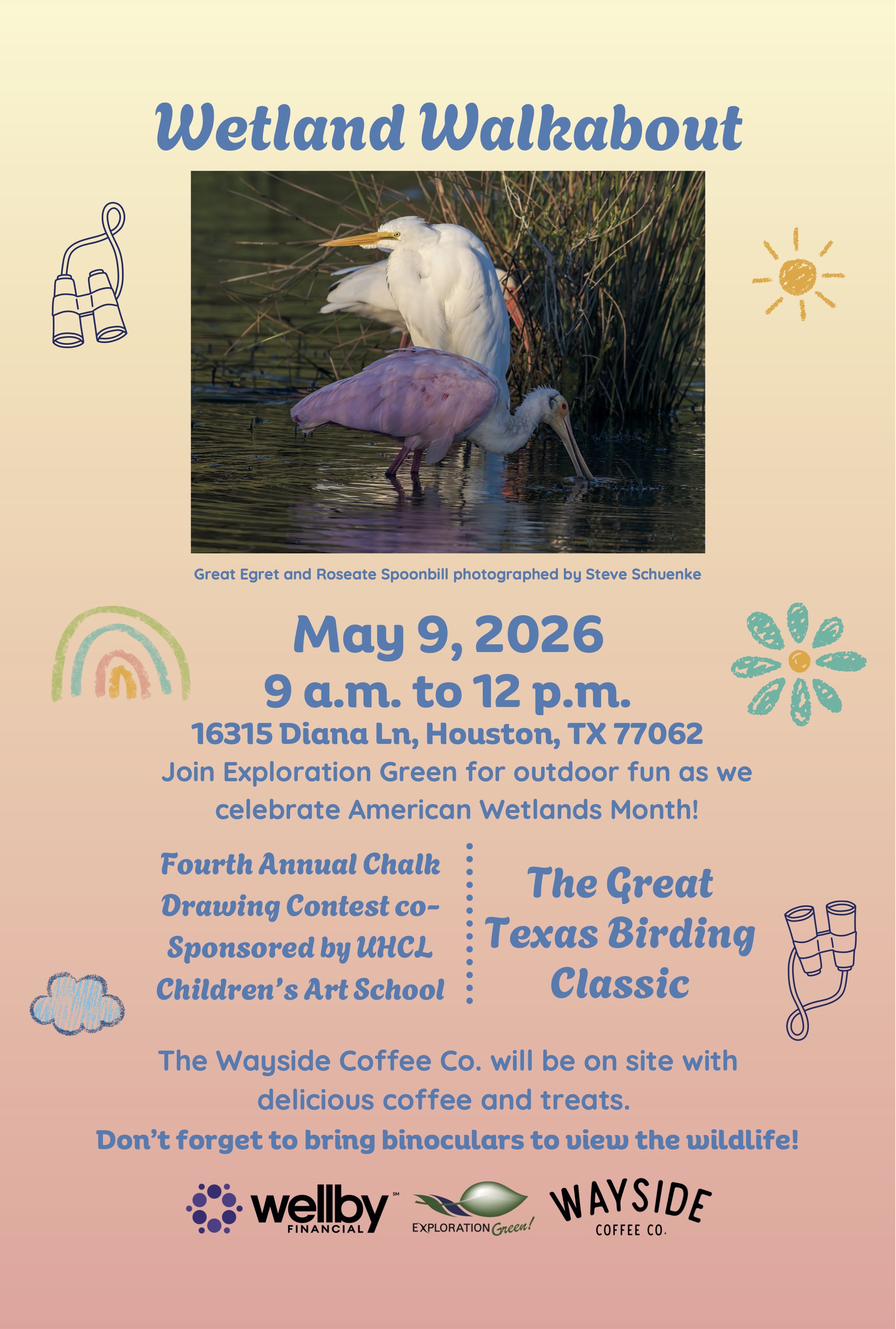 Saturday, June 13, 2026, 8:30 am, the Houston Sierra Club will visit and enjoy wetlands, wildflowers, ponds, and walking trails at Exploration Green. Exploration Green is 200 acres of parkland that used to be a golf course. The 200 acres have been turned into a green space for flood control, recreation (hike/bike trails), and wildlife observation.